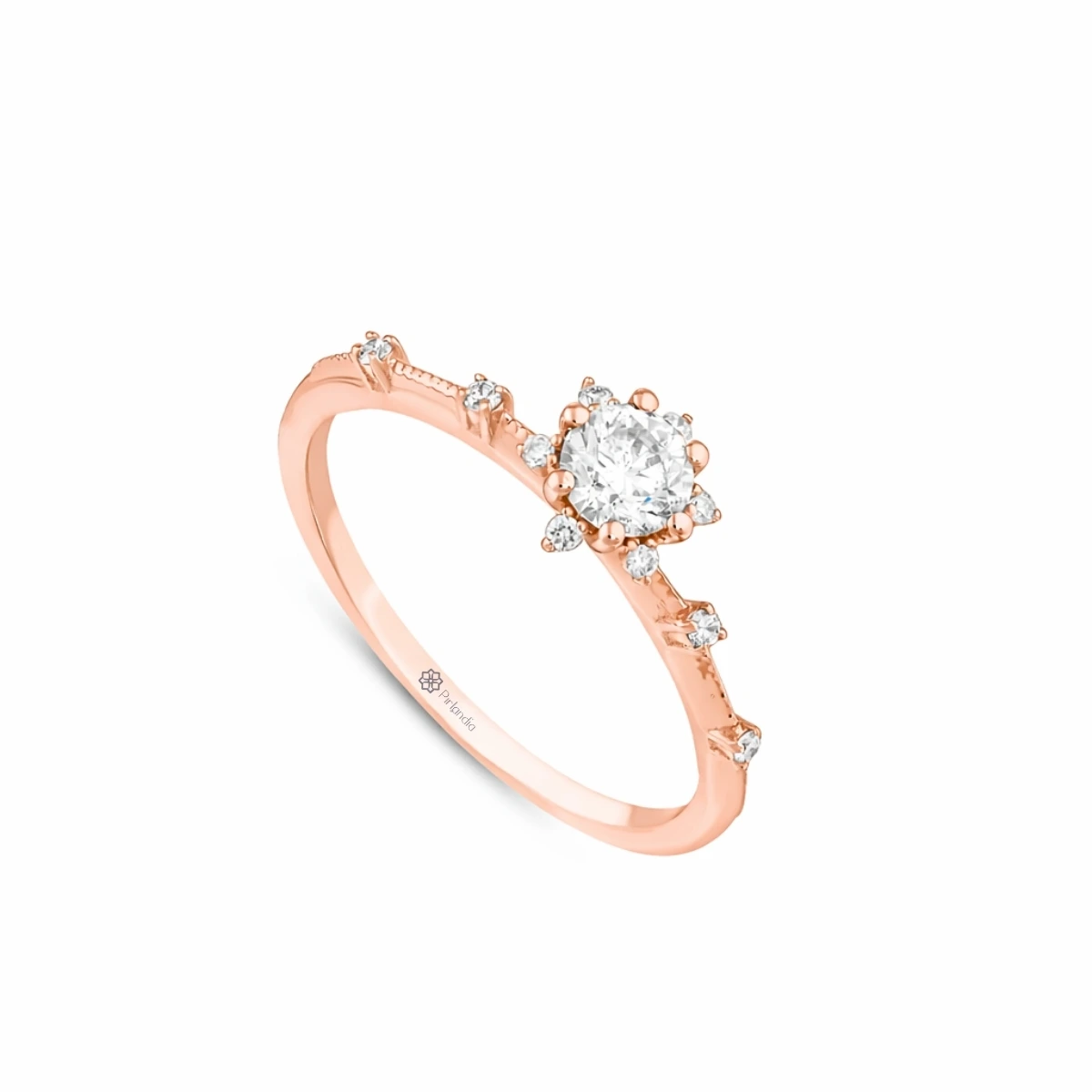 Sıcak rose altın tonu ile romantik bir görünüm sunan bu tasarım, 0,30 ct HRD uluslararası sertifikalı pırlanta ile tamamlanmıştır. Yan taşların kattığı ışıltı sayesinde yüzük parmakta daha dolgun ve dikkat çekici durur. Feminen, zarif ve modern detayları bir arada arayanlar için özel olarak tasarlanmıştır.
