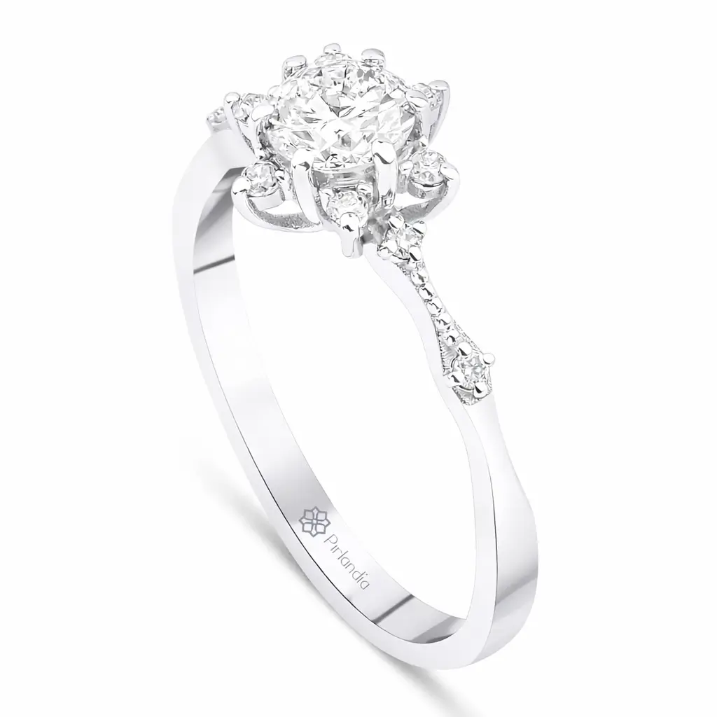 Eşsiz Işıltı: Merkezdeki pırlanta, yüzüğün vintage stilini göz kamaştırıcı bir ışıltıyla tamamlar.
